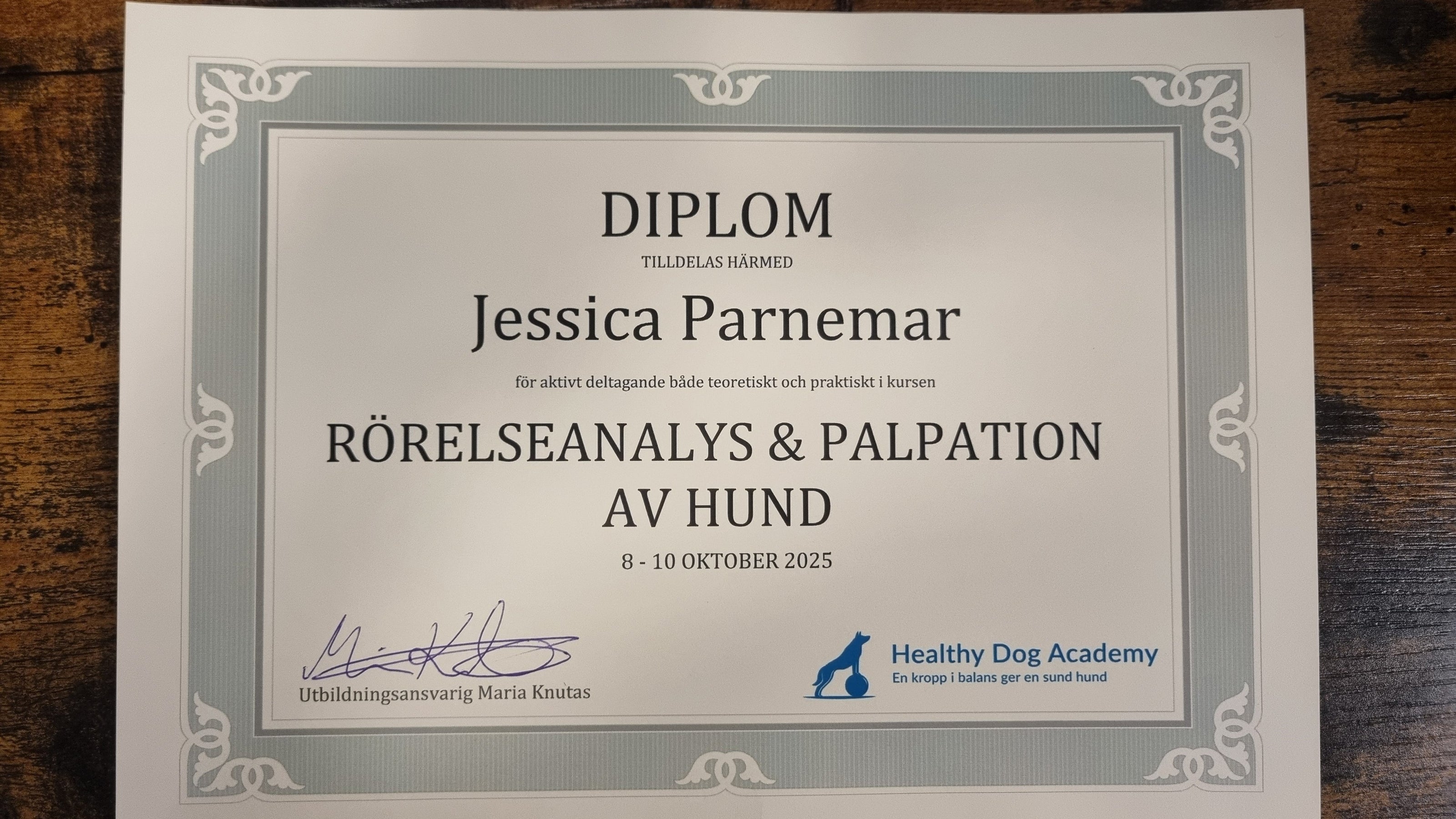Rörelseanalys och behandlingsundersökning innebär att jag observerar hundens rörelser och mönster samt gör en helkroppsundersökning där jag kontrollerar faschia, muskler, leder och rygg. Jag letar efter avvikelser i hundens muskulatur eller rörlighet och försöker förstå orsaken bakom dem. Om det skulle behövas ett besök hos veterinär kan detta ge en vägledning. Det kan vara användbart om du misstänker att hunden har ont eller om du bara är nyfiken på hundens hälsa.