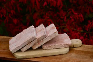 Kyckling 53 % (kött, mage, skinn, lever, hjärta, ben, brosk), nötkreatur 30 % (kött, mage, lunga, hjärta, lever, njure, brosk), gris 10% (kött, hjärta, lunga, brosk), havregryn, ärtfiber, tillsatta vitaminer och mineraler enligt skild lista