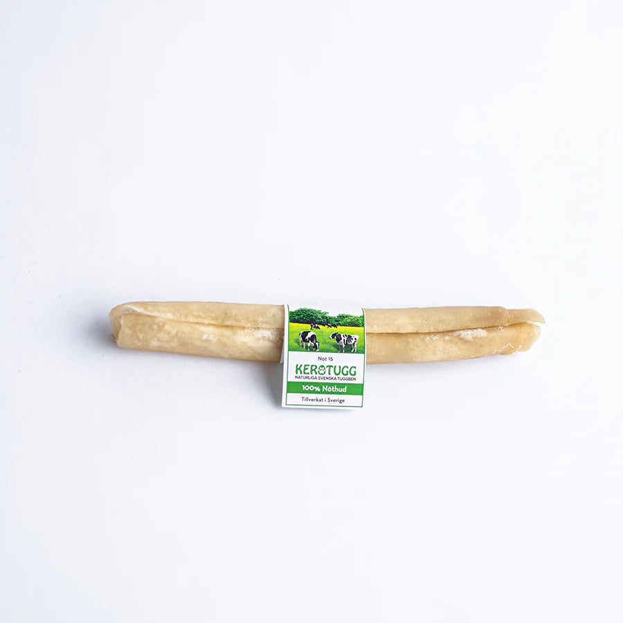 Hålbart tuggben tillvekat av Svenskt nötskinn.