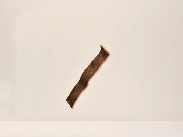 Njords nötstrips är ett naturligt tuggben, tillverkat för hand av svensk kohud från lokala gårdar. Tugget kladdar mindre och håller längre eftersom hela huden, inklusive den exklusiva narvhuden, används. Genom att dessutom behålla håren kan vi helt och hållet utesluta kemikalier från tillverkningsprocessen. Håren bidrar med extra god smak och fibrer.