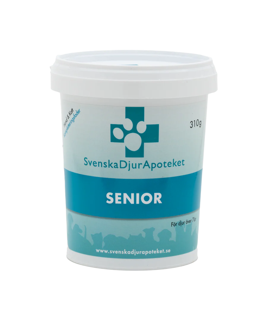 Svenska DjurApotekets Senior är en kombination av tillskotten Glukosamin, MSM, Grönläppad Mussla och Kondroitin. Senior är även berikad med algen Spirulina.
