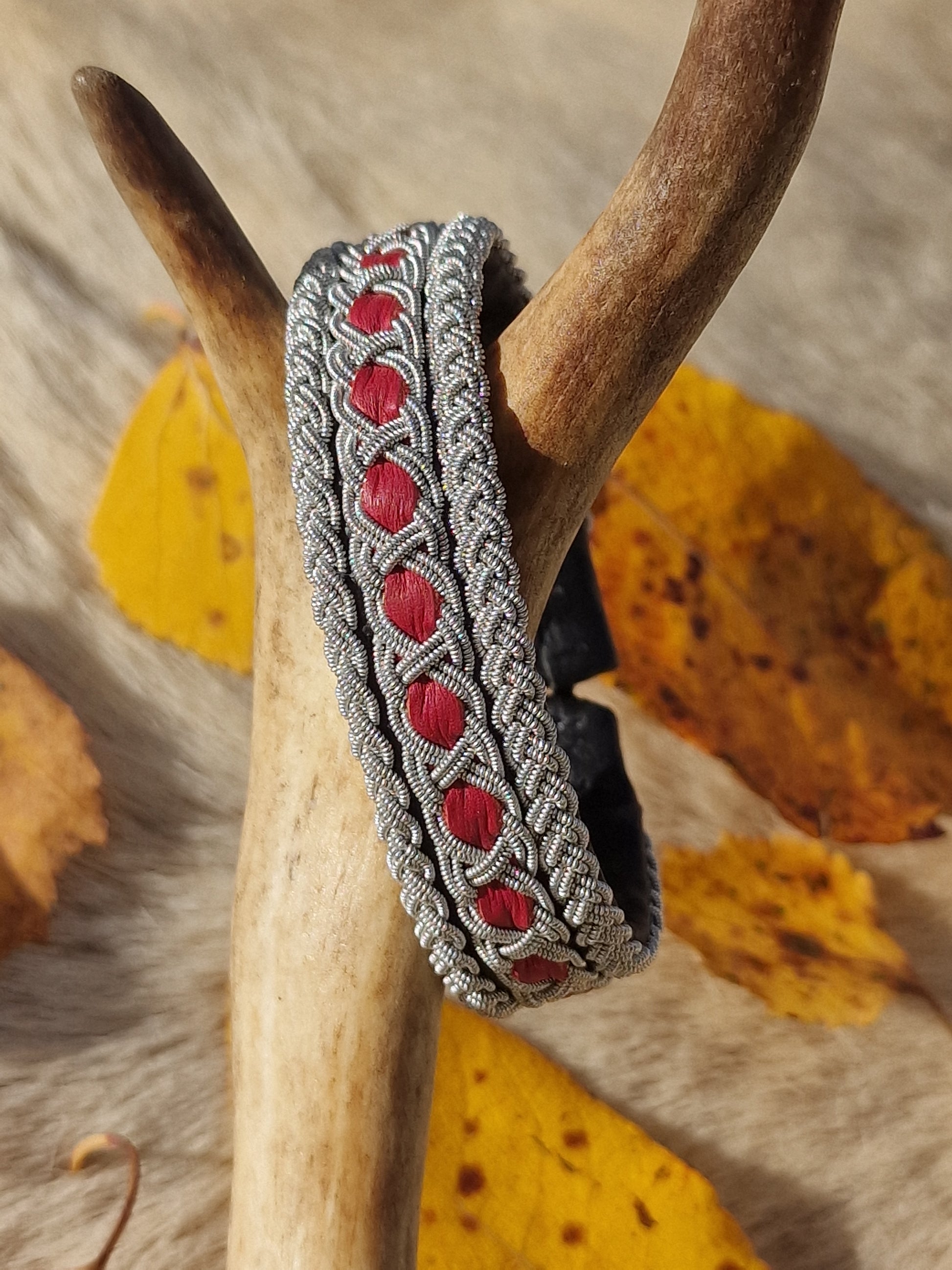 Armband med tre st tenntrådsflätor. Ca 1,5 cm brett.